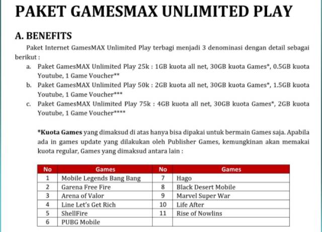 Sedangkan kapasitas kuota yang dibutuhkan untuk mendownload games ini adalah sekitar 650 mb. Tidak hanya ada 3 pilihan paket yang bisa di beli namun ada bonus kuota lain dan juga memungkinkan kalian untuk mendapatkan voucher yang bisa di tukarkan dengan item menarik yang terdapat di setiap game. Paket gamesmax ini memiliki 3 jenis paket yaitu silver gold dan diamon. Paket gamesmax telkomsel kuota internet khusus untuk pecinta game. Jadwal event free fire ff hingga pertengahan juli 2020. Bermain garena free fire juga sangat mudah dimana quota data kamu tidak akan terpakai tidak ada kabel yang merepotkan dan tidak perlu perangkat mobile yang mahal.