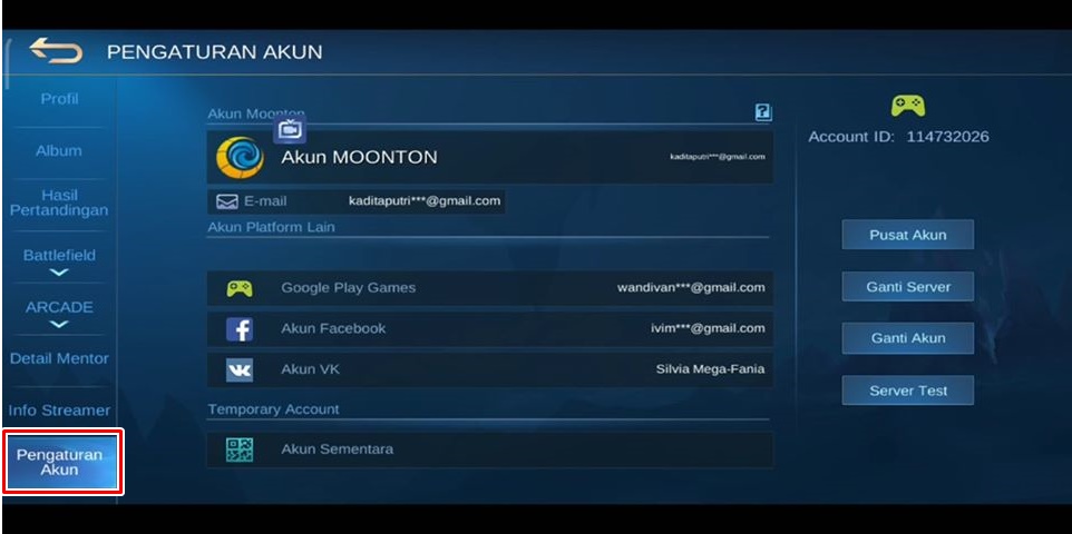 Silahkan tap ikon pengaturan di kanan atas game free fire. Pilih bind vk untuk menautkan ke akun vk.