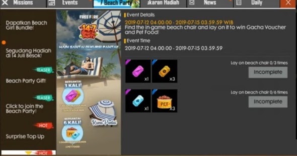 Tempat kursi pantai di free fire. Tempat kursi pantai free fire ada di sini. Event sederhana yang bisa kamu lakukan kapanpun ini mudah banget untuk dilakukan yaitu kamu hanya perlu duduk di kursi pantai free fire yang. Event ini cukup mudah dilakukan yaitu sobat hanya diminta duduk di kursi pantai free fire yang ada di dalam maps. Simak sampai habis vidionya ya. Pada kesempatan kali ini saya akan share kepada kalian semua misteri yang belum terpecahkan di free fire. Apalagi jika ada suatu event baru yang diadakan oleh pihak pengembang yang cukup ramai dibicarakan.